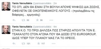 Δεν θα είναι απόψε στη βουλή ενημέρωσε ο κ. Βαρουφάκης, επικαλούμενος οικογενειακούς λόγους