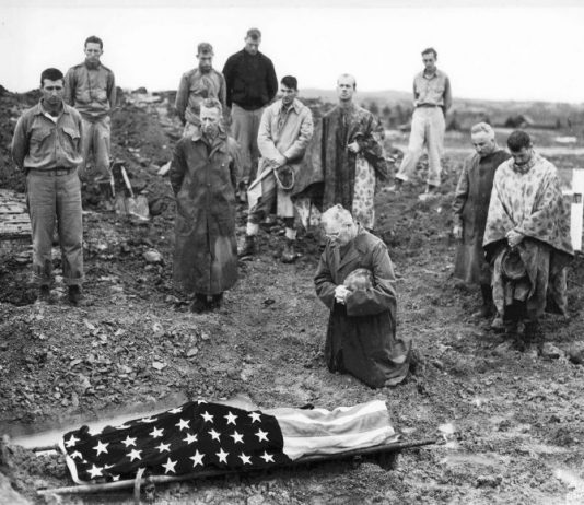 Ο συνταγματάρχης που προσεύχεται μπροστά στη σορό του γιου του, που σκοτώθηκε στη μάχη που συμμετείχε και ο ίδιος. Τα λόγια του πατέρα μπροστά στις σορούς δεκάδων νεκρών στρατιωτών