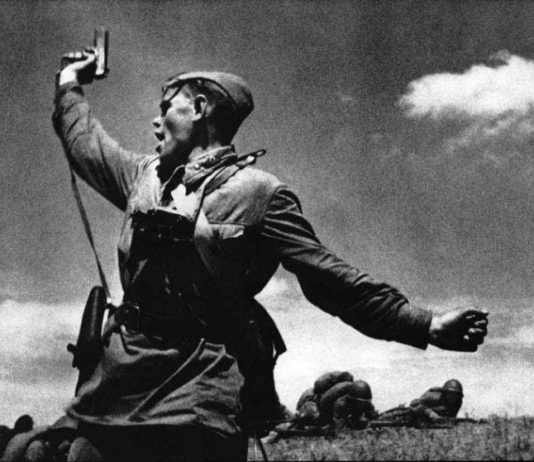 Η διάσημη φωτογραφία του 33χρονου σοβιετικού επιτρόπου που παρακινεί τους στρατιώτες σε επίθεση. Λίγες στιγμές μετά ήταν όλοι νεκροί. Η ταυτότητά του αποκαλύφθηκε το 1965