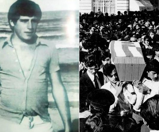 Η δολοφονία του Πανίκου Δημητρίου, όταν βρετανικό άρμα πέρασε πάνω από το κορμί του δύο φορές. Ο 18χρονος μαθητής βρισκόταν στην πρώτη γραμμή της διαδήλωσης
