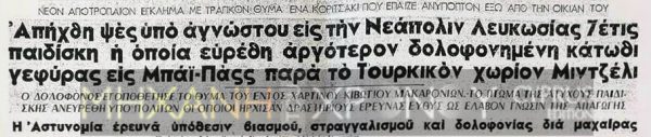 Διαβάστε επίσης στη ΜτΧ: Το έγκλημα στην Κερύνεια όταν ο σύζυγος δολοφόνησε την έγκυο γυναίκα του και σκηνοθέτησε τον ξυλοδαρμό του για άλλοθι