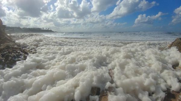 Οι επιστήμονες εξηγούν ότι ο παράξενος αφρός δημιουργείται από ακαθαρσίες στη θάλασσα, όπως άλατα, χημικές ουσίες, νεκρά φυτά και ψάρια που αποσυντίθενται και εκκρίσεις από φύκια. Όλα αυτά ανακατεύονται μεταξύ τους από τα ισχυρά ρεύματα, με αποτέλεσμα να δημιουργούνται φυσαλίδες.