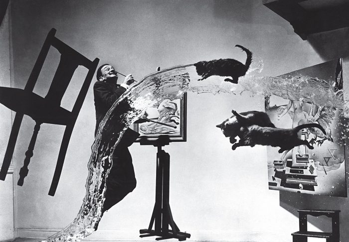 Στη φωτογραφία εικονίζεται ο Νταλί να αιωρείται κρατώντας ένα πινέλο στα χέρια. Δίπλα του πετούν στον αέρα τρεις γάτες, νερό και μια καρέκλα. Τραβήχτηκε το 1948 από τον Αμερικανό φωτογράφο Φίλιπ Χάλσμαν με τον οποίο ο σουρεαλιστής ζωγράφος συνεργαζόταν από το 1941.